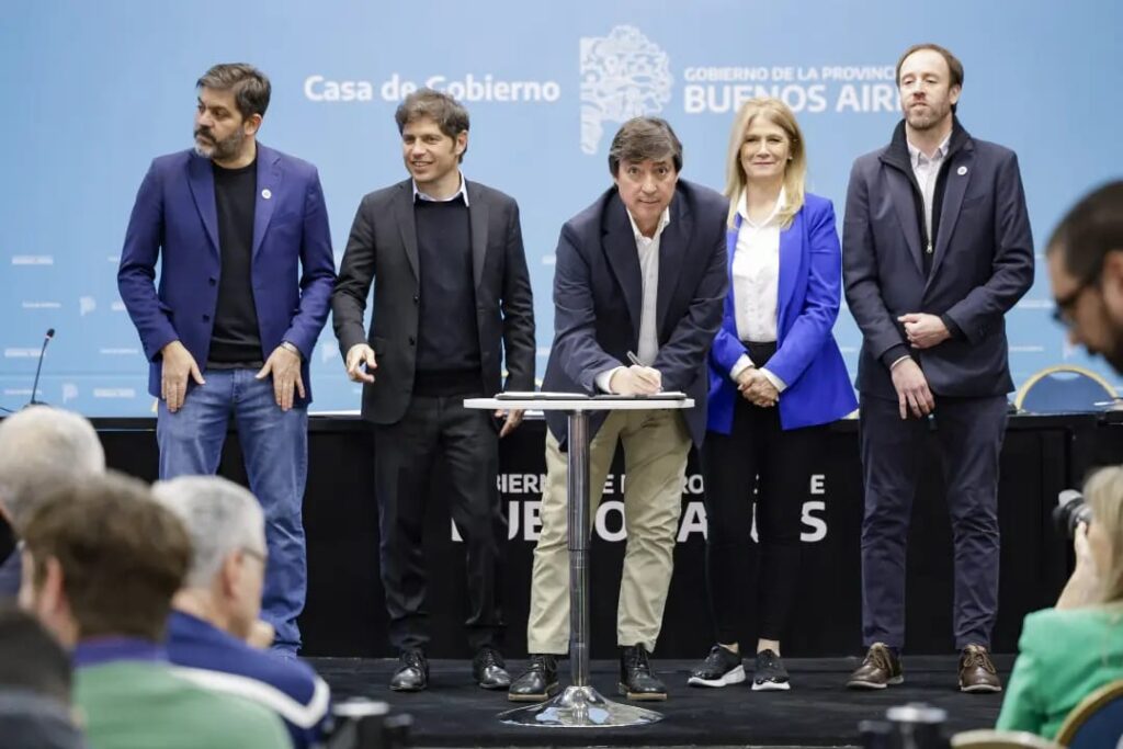 El gobernador de la provincia de Buenos Aires, Axel Kicillof, encabezó este jueves el acto de firma del tercer desembolso del Fondo de Fortalecimiento Fiscal Municipal (FFFM), que alcanza los $38.106 millones que serán transferidos a todos los municipios. Fue en el Salón Dorado de la Casa de Gobierno, junto a la vicegobernadora Verónica Magario; los ministros de Economía, Pablo López, y de Gobierno, Carlos Bianco; y 92 intendentas e intendentes bonaerenses entre los que se encontraba, Alejandro Acerbo.