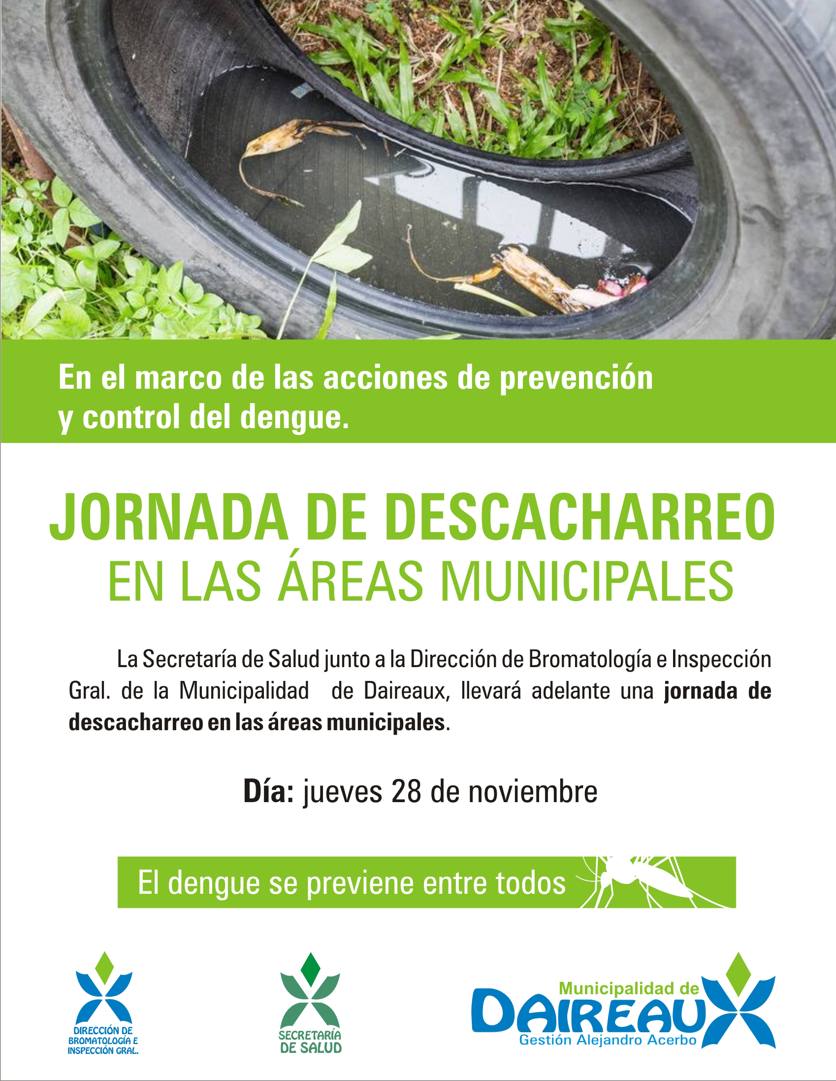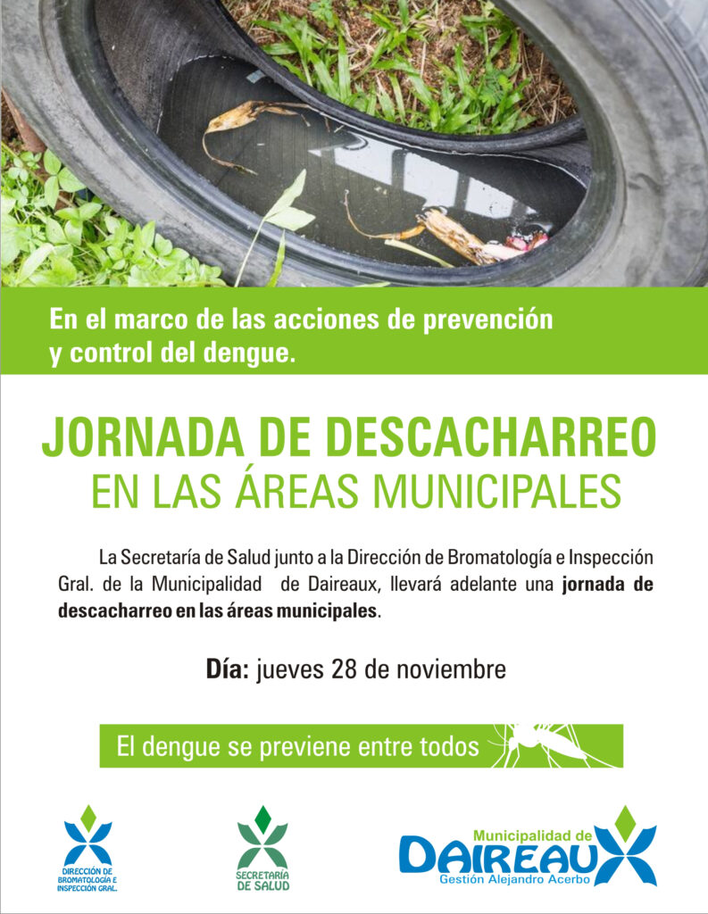 El 28 de noviembre se realizará una jornada de descacharreo en las áreas municipales, para continuar reforzando la prevención en toda la comunidad.