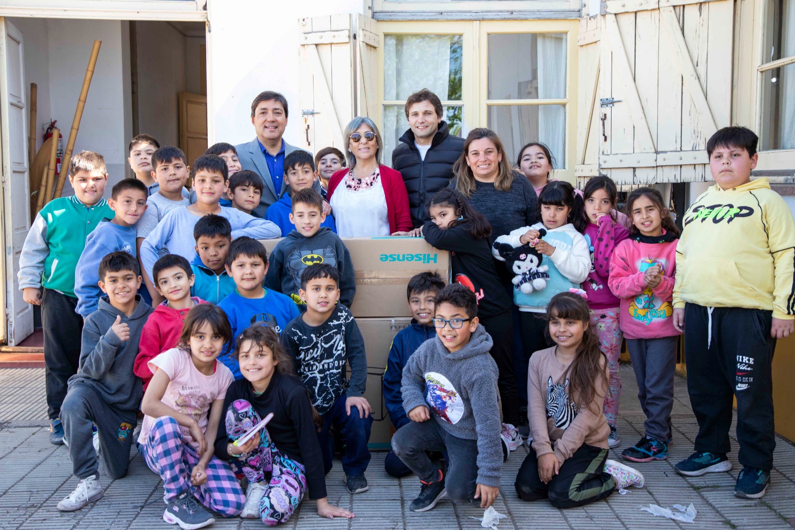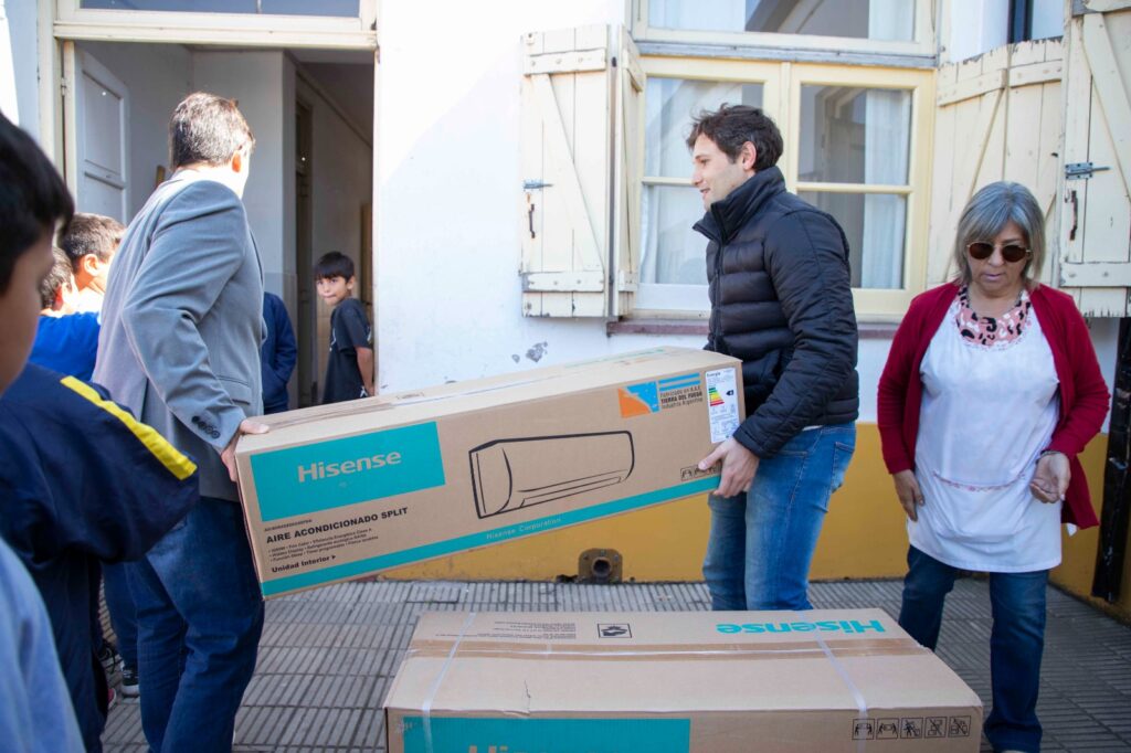 En presencia de estudiantes, docentes, la Directora, Marta Mendoza; la Presidenta del Consejo Escolar, Diolinda Zapata; el Inspector de Infraestructura Escolar, Mauricio Larrea Uriarte; y el Intendente Alejandro Acerbo, se entregó el aire acondicionado.
