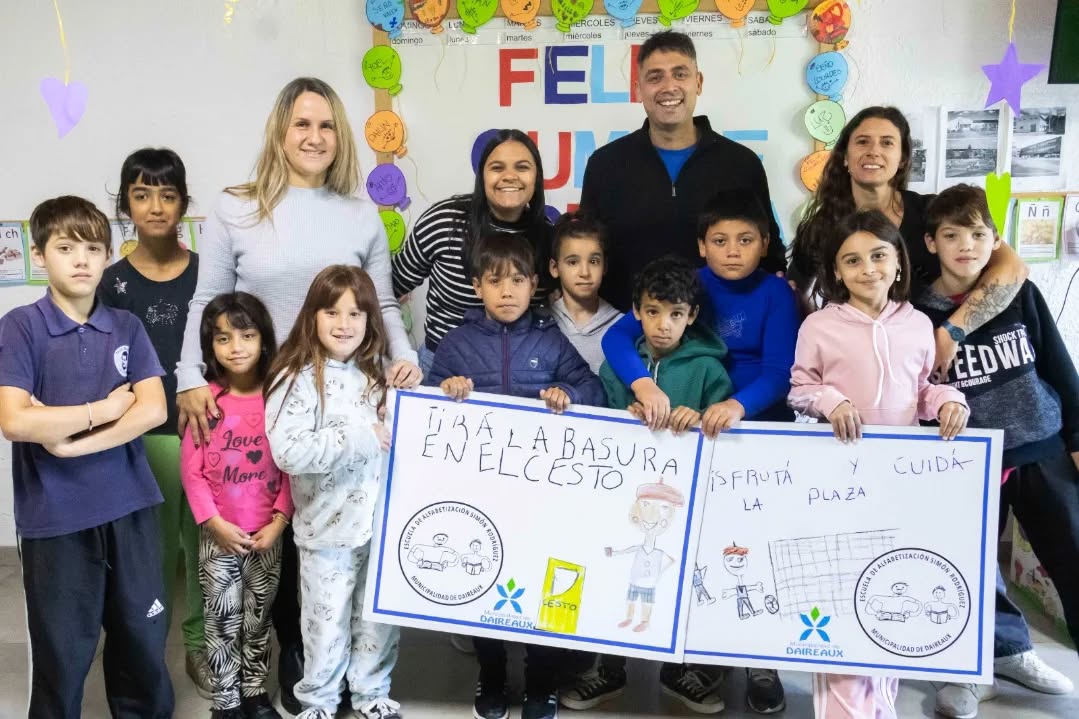 En el marco de este aniversario, estudiantes y docentes vienen celebrando desde hace varios días con distintas actividades recreativas y encuentros. Durante las jornadas, visitaron el despacho municipal, realizaron dibujos y compartieron momentos de juego. En esta ocasión, también se confeccionaron carteles con dibujos y consignas ecológicas, que serán colocados en la placita de la estación.