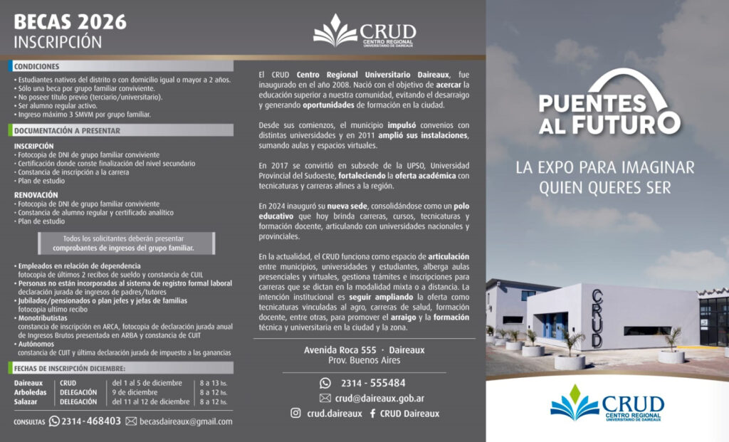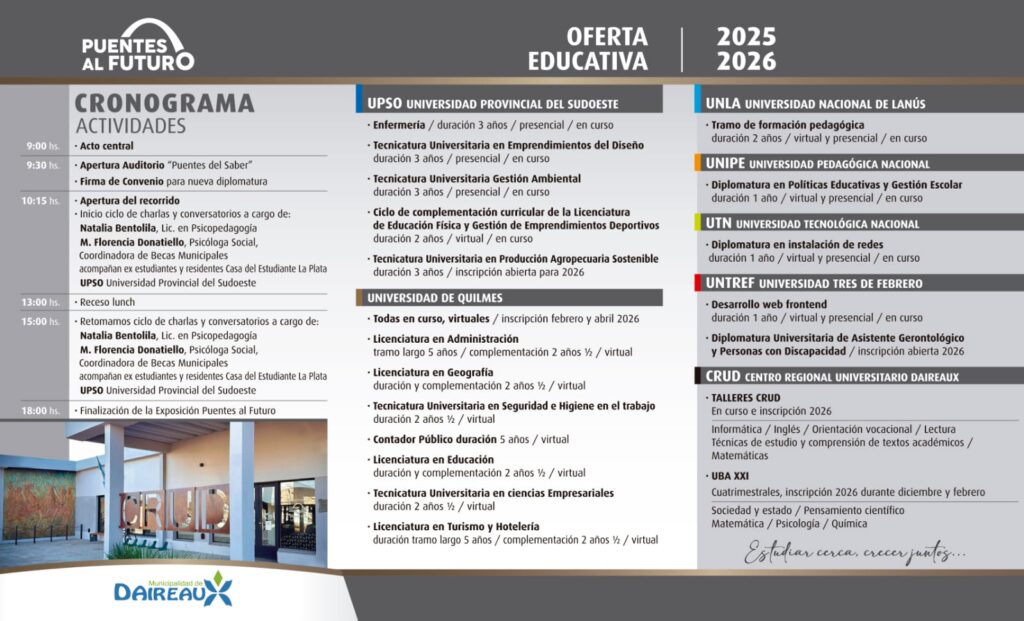 La Municipalidad de Daireaux, a través de la Dirección de Educación, invita a participar de la Expo Universitaria 2025.