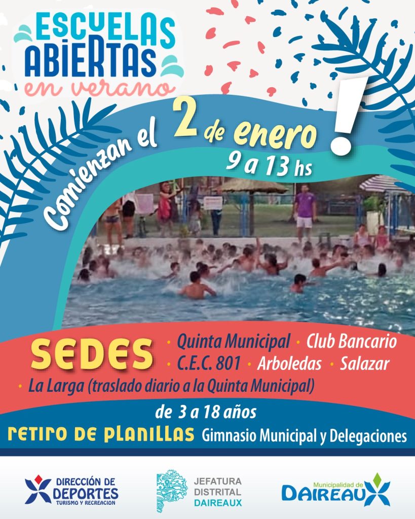A partir del viernes 2 de enero, de 9 a 13 hs, comienzan las actividades para chicos de 3 a 18 años.