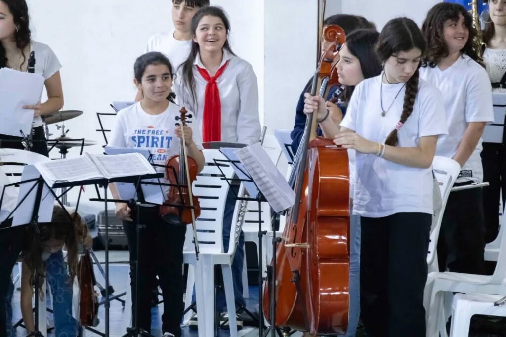 La jornada contó con el acompañamiento de la orquesta escuela, que abrió la presentación de la muestra.