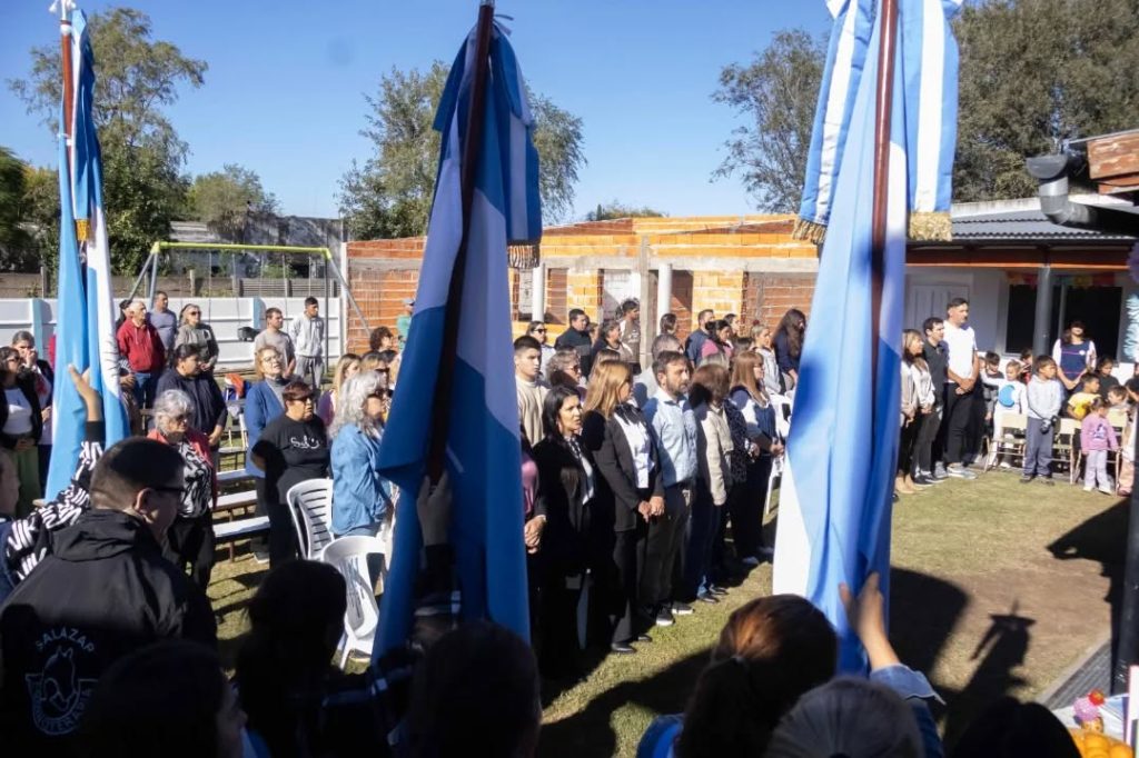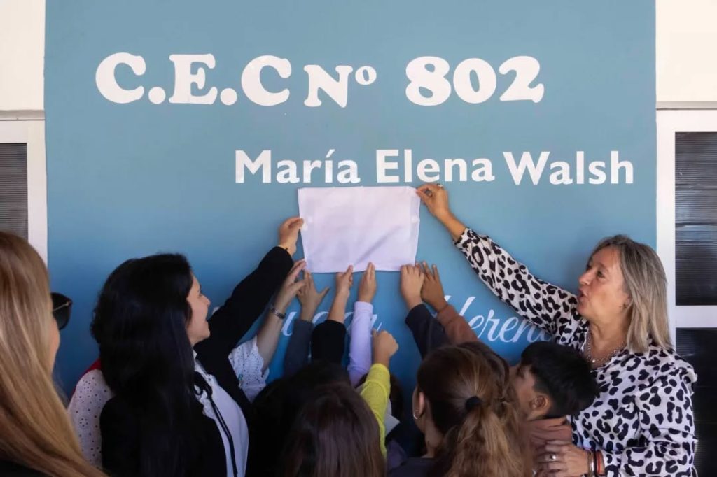 Se llevó a cabo el acto de imposición de nombre al Centro Educativo Complementario N° 802 de Salazar, en una jornada significativa para toda la comunidad. La institución adoptó oficialmente el nombre “María Elena Walsh”. El acto contó con la presencia de la intendenta municipal María Serra, la directora del establecimiento María Griselda Casas, la inspectora jefe distrital Paola Romano, la inspectora de la modalidad Patricia Castillo y la directora de la modalidad Eliana Vásquez, junto a autoridades educativas, autoridades del Ejecutivo Municipal, concejales, consejeros escolares, representantes institucionales, ex docentes, familias y comunidad.