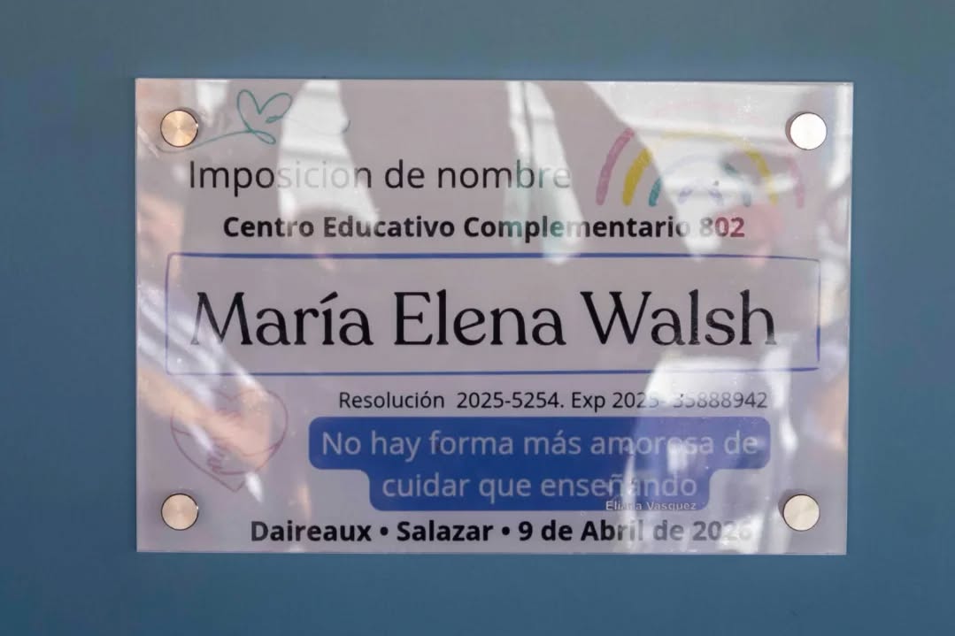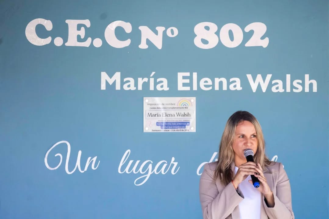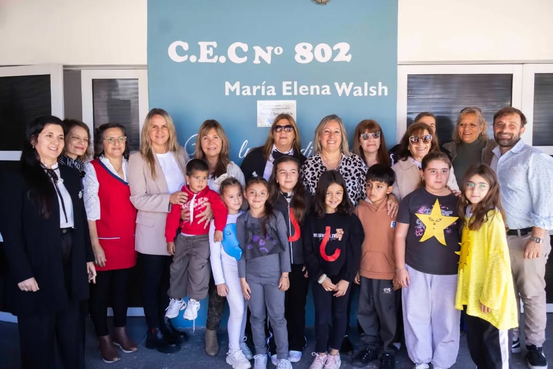 Se llevó a cabo el acto de imposición de nombre al Centro Educativo Complementario N° 802 de Salazar, en una jornada significativa para toda la comunidad. La institución adoptó oficialmente el nombre “María Elena Walsh”. El acto contó con la presencia de la intendenta municipal María Serra, la directora del establecimiento María Griselda Casas, la inspectora jefe distrital Paola Romano, la inspectora de la modalidad Patricia Castillo y la directora de la modalidad Eliana Vásquez, junto a autoridades educativas, autoridades del Ejecutivo Municipal, concejales, consejeros escolares, representantes institucionales, ex docentes, familias y comunidad.