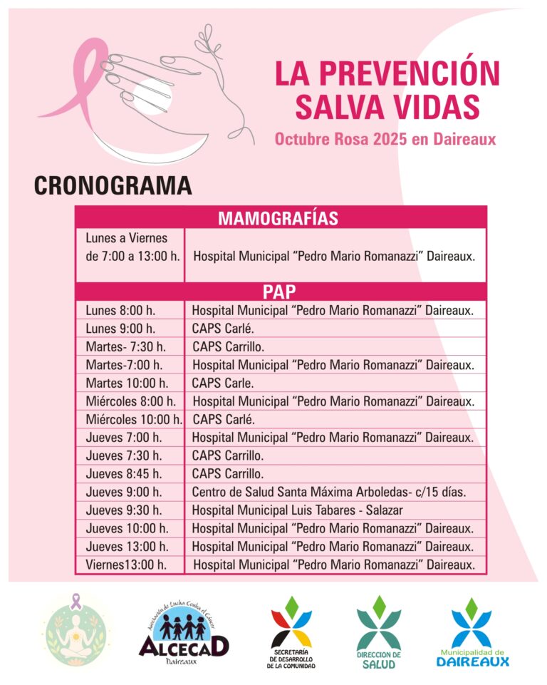 - Martes: 7:00 Hospital Municipal / 7:30 CAPS Carrillo / 10:00 CAPS Carlé.