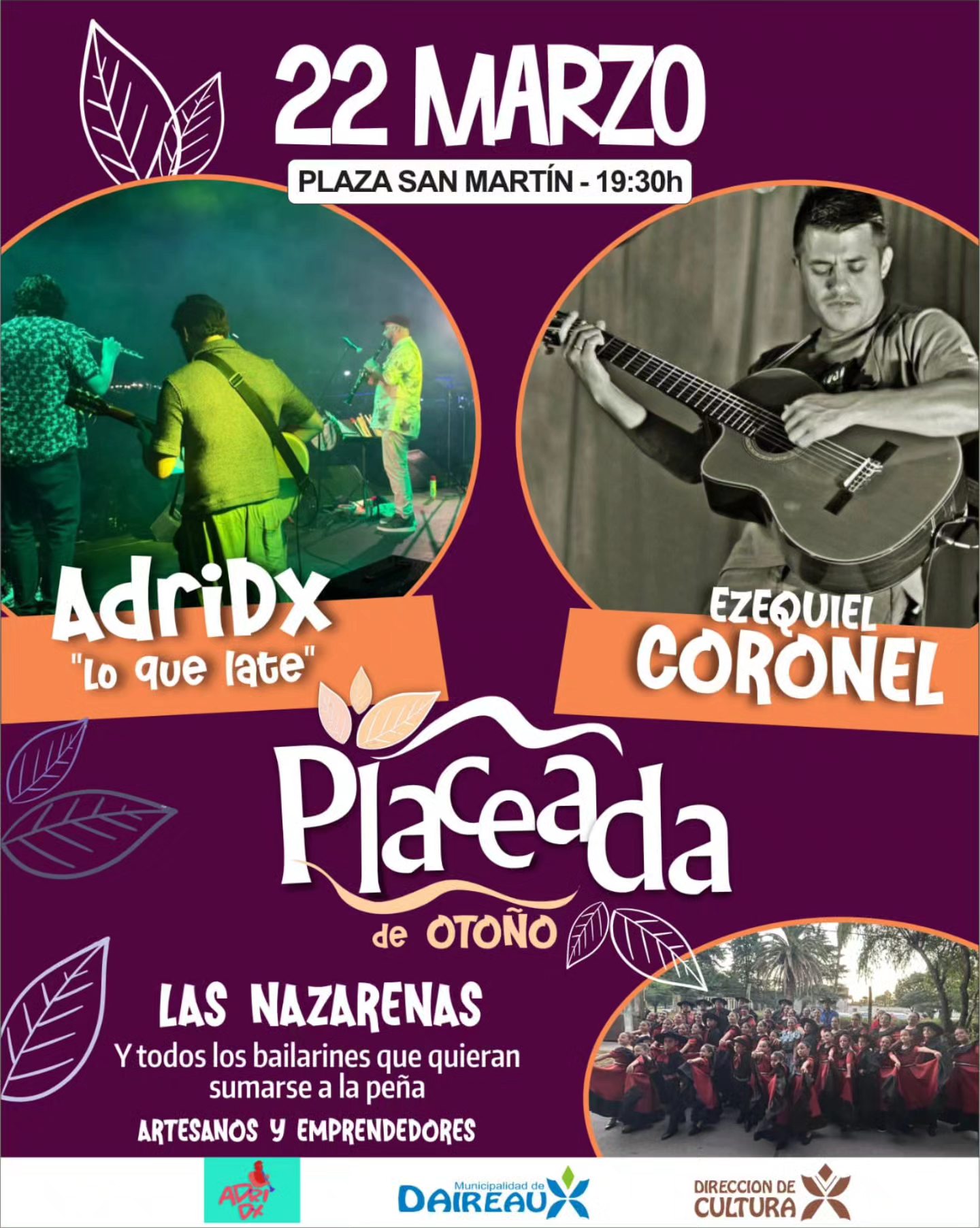 El domingo 22 de marzo, la Dirección de Cultura te invita a la Plaza San Martín para vivir «Placeada de Otoño»: guitarras que cuentan historias, ritmos que invitan a moverse y una peña abierta donde nadie se queda afuera.