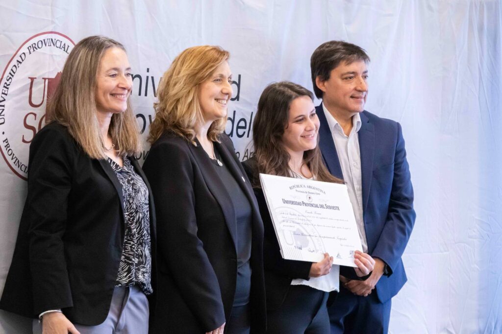 La Rectora Savoretti felicitó a las egresadas y subrayó la importancia de contar con centros universitarios locales equipados y de calidad. Además, celebró la incorporación de la nueva Tecnicatura Universitaria en Producción Agropecuaria Sostenible, orientada a fortalecer la producción local con una mirada ambiental y de sostenibilidad.