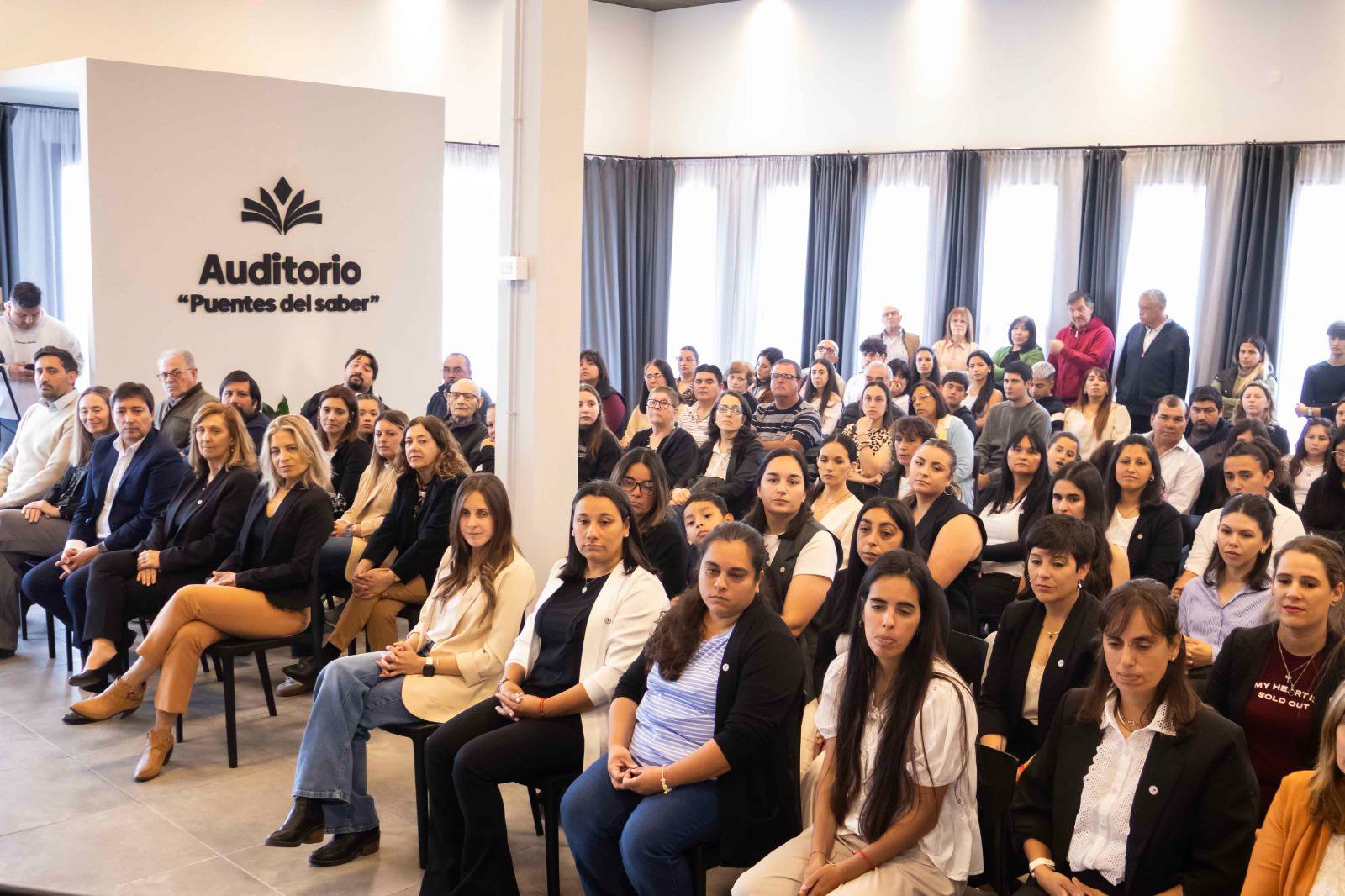El Auditorio Municipal “Puentes del Saber” en el CRUD, fue escenario del primer acto de colación, donde se celebró la graduación de las nuevas profesionales de la Tecnicatura Universitaria en Acompañamiento Terapéutico, carrera muy demandada y con amplia participación.