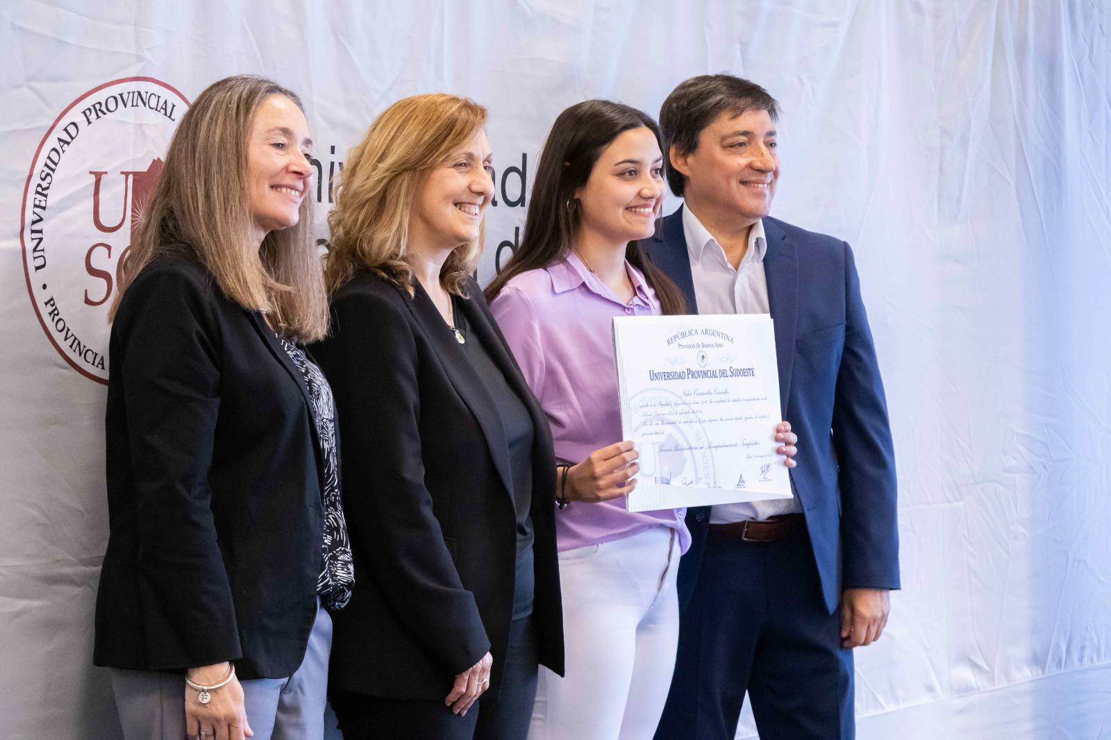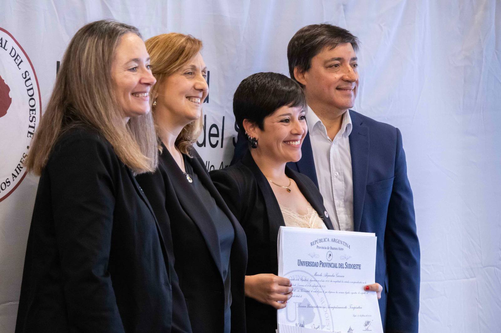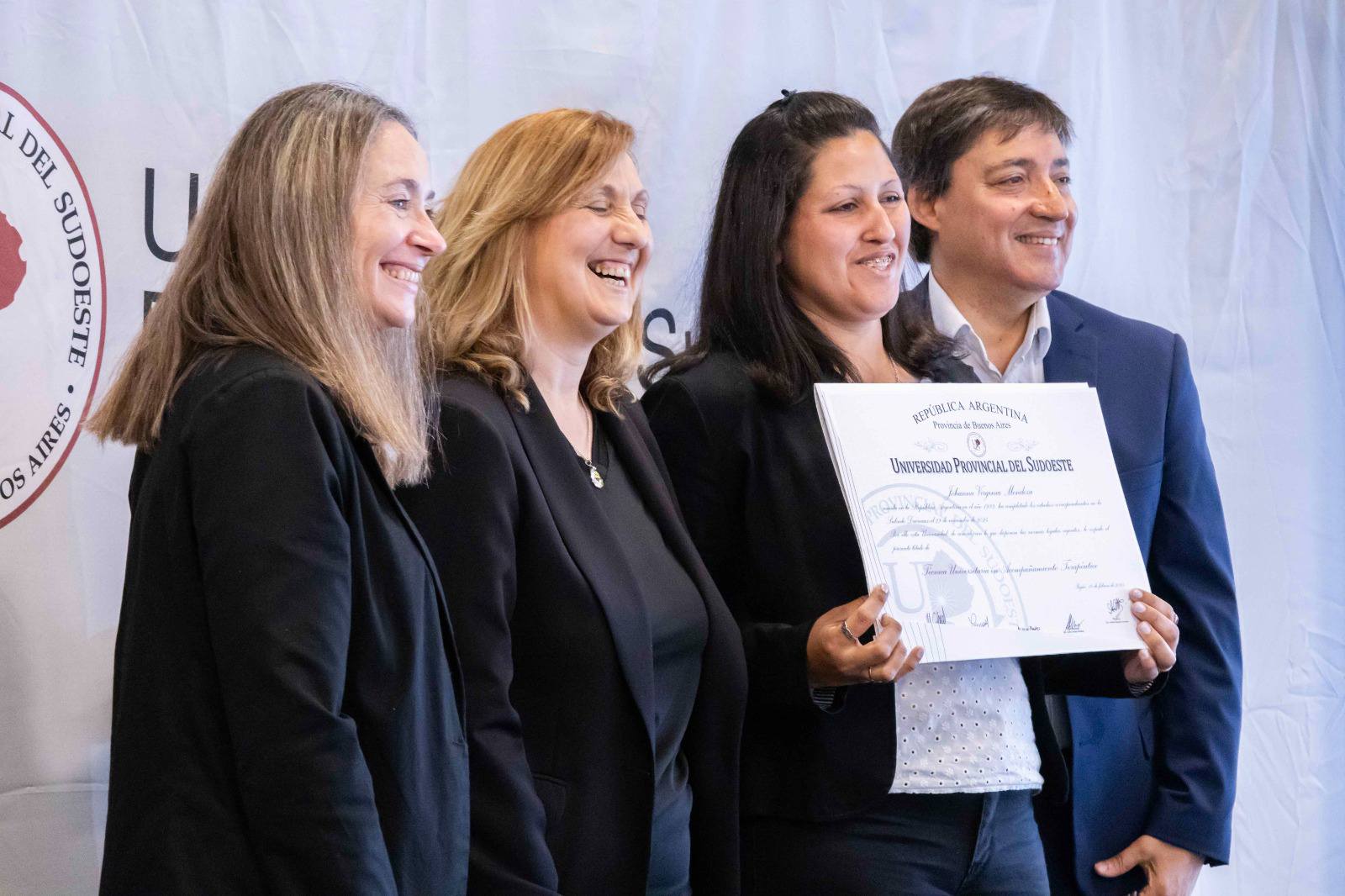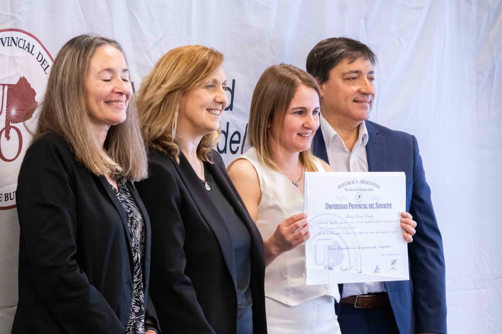 La Rectora Savoretti felicitó a las egresadas y subrayó la importancia de contar con centros universitarios locales equipados y de calidad. Además, celebró la incorporación de la nueva Tecnicatura Universitaria en Producción Agropecuaria Sostenible, orientada a fortalecer la producción local con una mirada ambiental y de sostenibilidad.