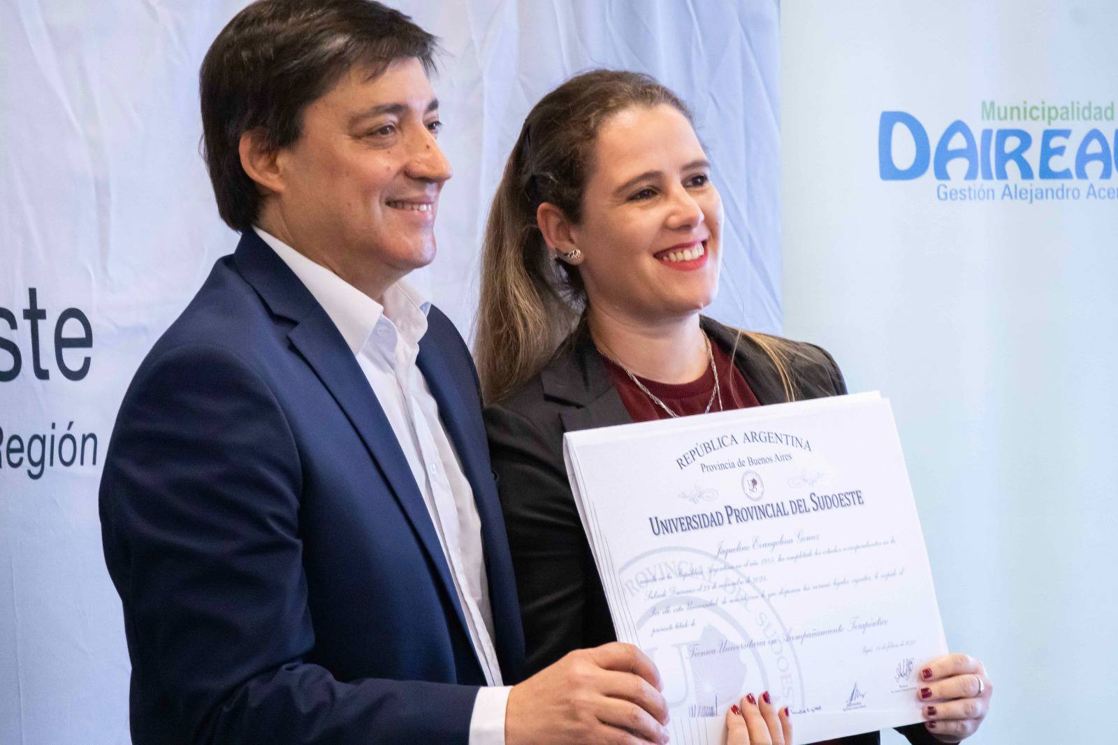 El acto fue presidido por el Intendente Alejandro Acerbo y la Rectora de la UPSO, Dra. Andrea Savoretti, junto a la Vicerrectora Lic. María Claudia Dietz y autoridades locales. En su mensaje, el Intendente destacó el trabajo conjunto con la universidad y la decisión política que permitió consolidar un espacio educativo que garantiza igualdad de oportunidades para los vecinos.