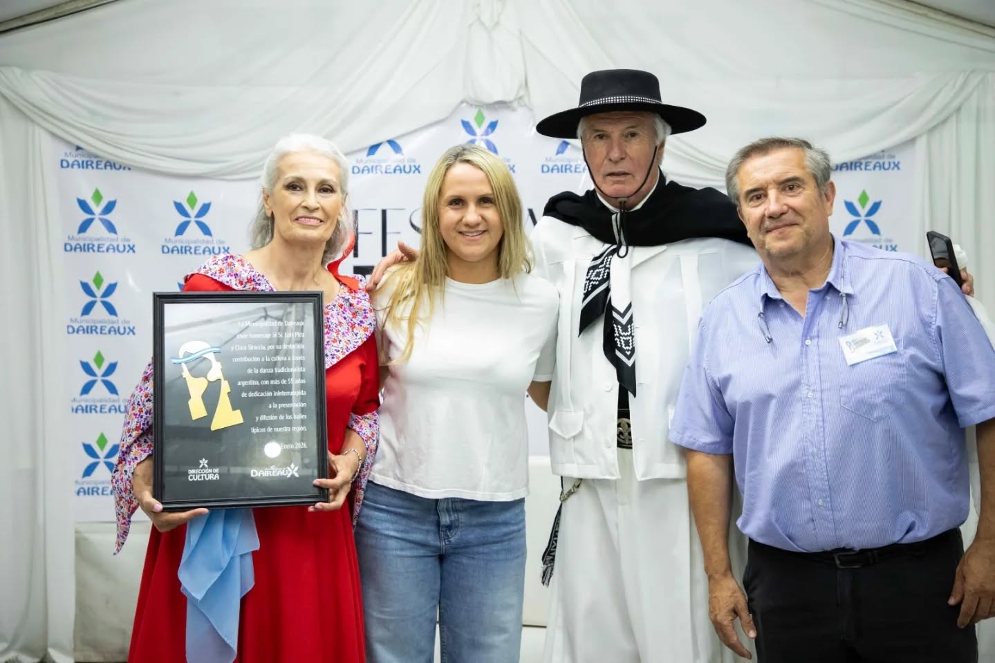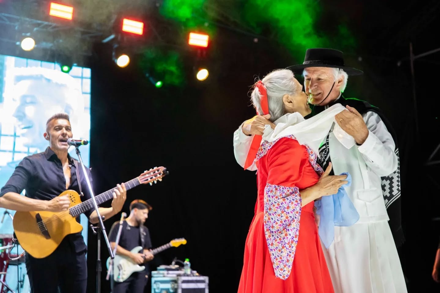 El escenario también recibió al grupo folclórico Rayces, con un repertorio íntegramente interpretado por músicos deroenses, y el cierre previo al número central estuvo a cargo de Los Caldenes, quienes contaron con la participación especial de Luis Piris y Clara Straccia. Ambos fueron reconocidos por su trayectoria como bailarines.