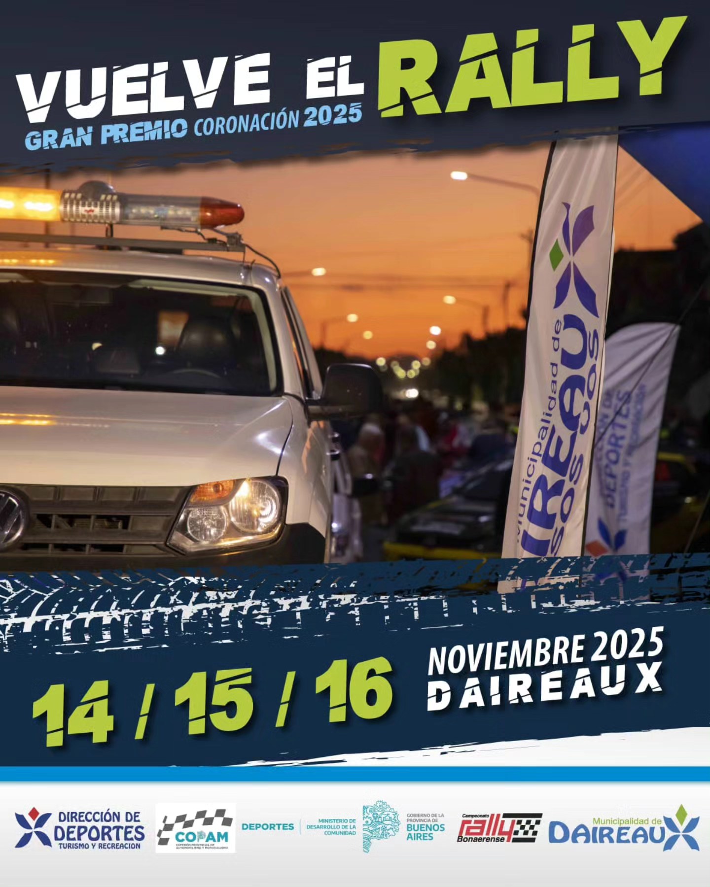 Daireaux será sede delPremio Coronación 2025 “Gustavo Casado”, una de las fechas más destacadas del calendario del Rally Bonaerense. La competencia se llevará a cabo los días 14, 15 y 16 de noviembre, reuniendo a fanáticos del automovilismo y al público en general en una nueva edición que promete grandes emociones.